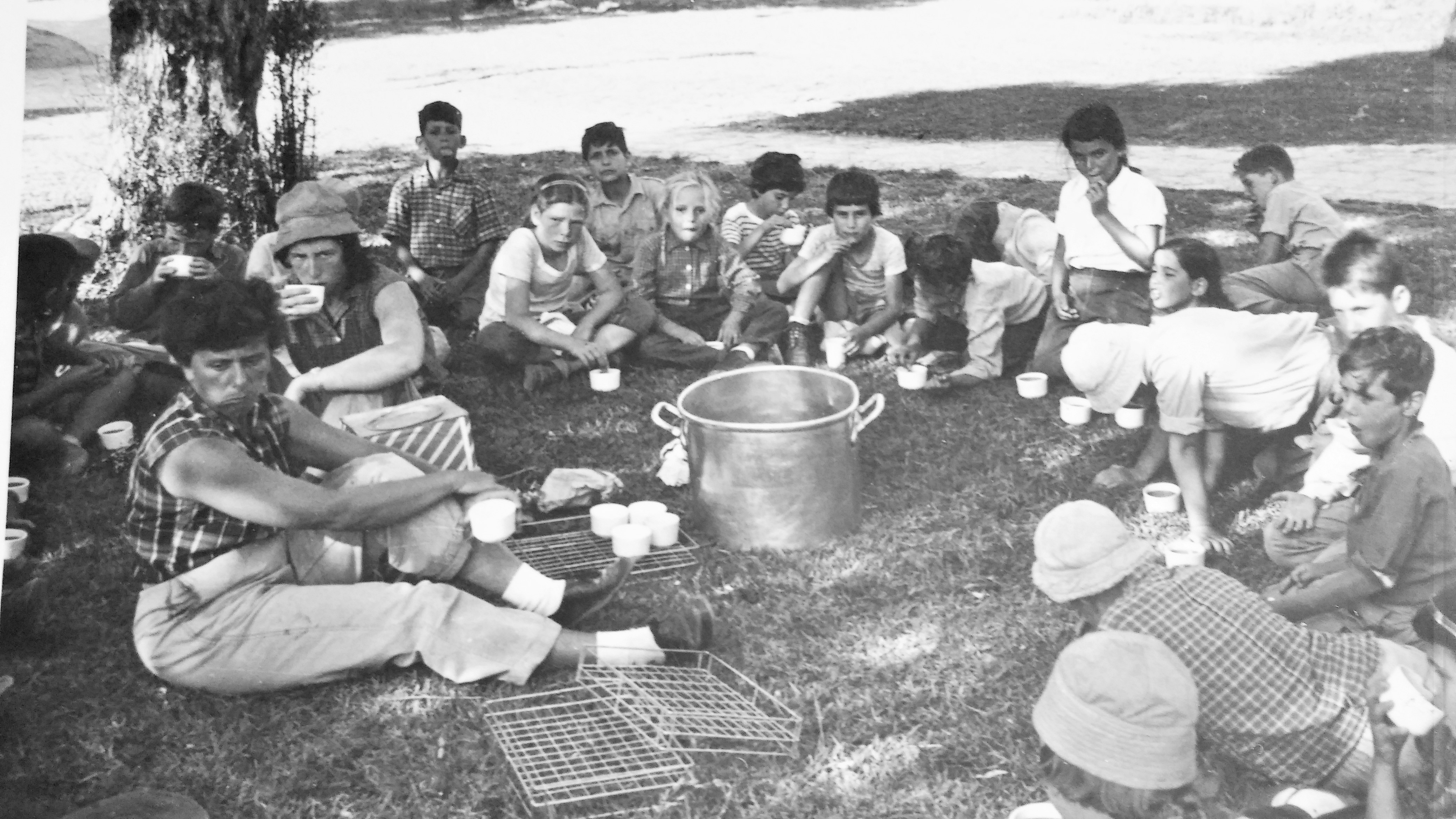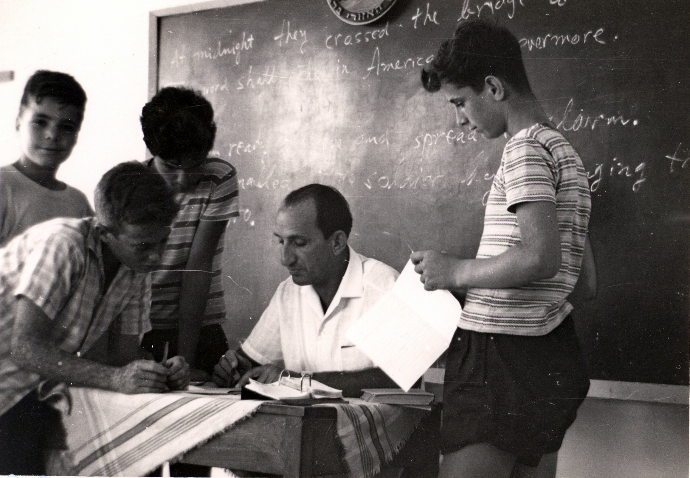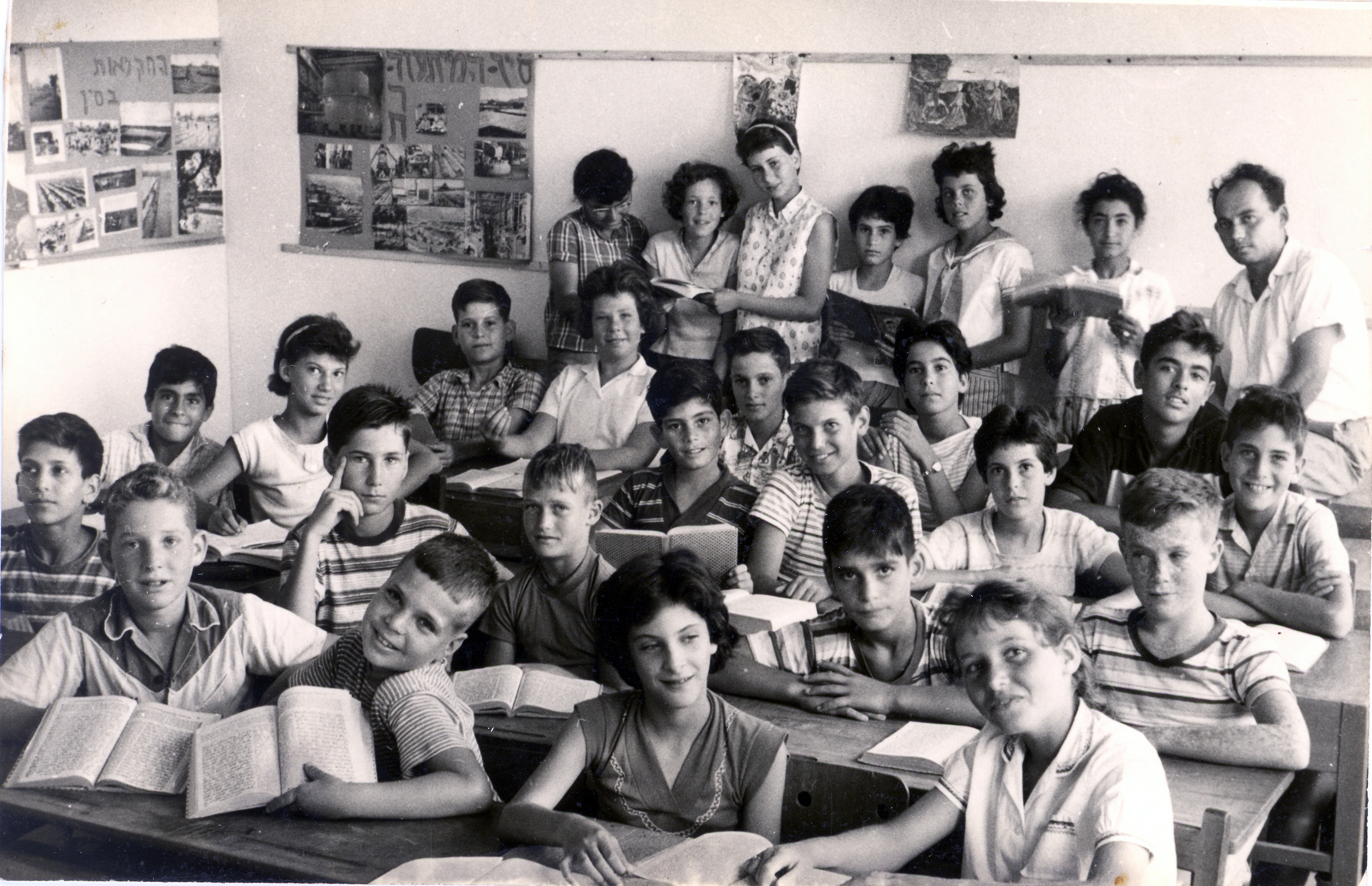 מופיעים בתמונה: המורה באמצע – חנה גולן, מימין מחוץ למסילה – עמוס גרוטקרק, שלמה גלזר קצת מאחור, ליד המורה חנה דינה פרקש, עמוס שונברג, מאחוריו מציץ עמוס כהן ז"ל